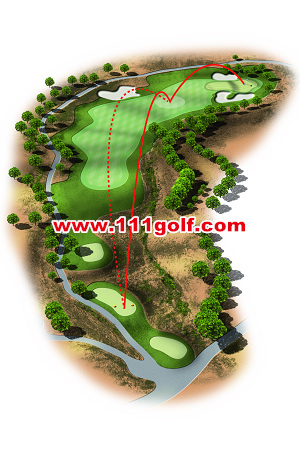 拿出你最有信心的球杆,做出平顺的挥杆动作,目标就是将球开上球道。如果这一洞的距离不远,且果岭周围没有沙坑或障碍捍卫着,你还是有机会两杆上果岭。