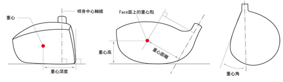 我们可以将杆头的重量看成集中在一点,这个点就是重心。重心的位置关系到击球的弹道表现,它衍生出来的重心高度、重心深度、重心角是关系到起飞角、甜蜜点大小、倒旋、杆面回正难易等的重要因素。