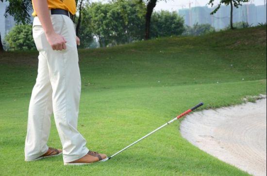 如何打好平坦球道上沙坑球 向下握杆球位后移