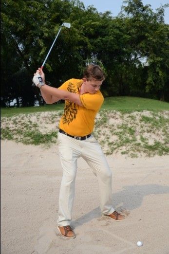教练示范沙坑球挥杆动作